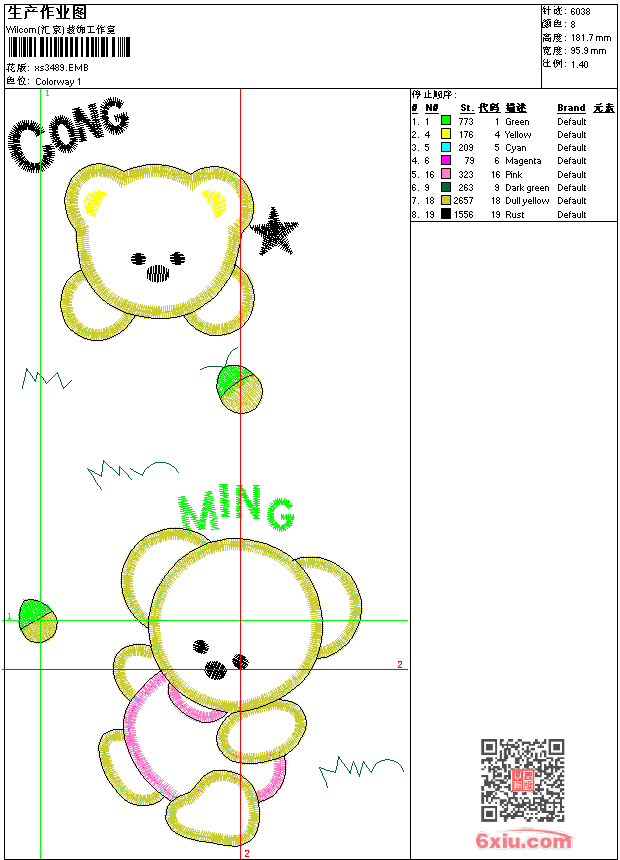 - 版带文件需绣花软件方可打开,可配色打印导出各种格式或直接上机绣。如无绣花软件可下载1:1模拟效果图。