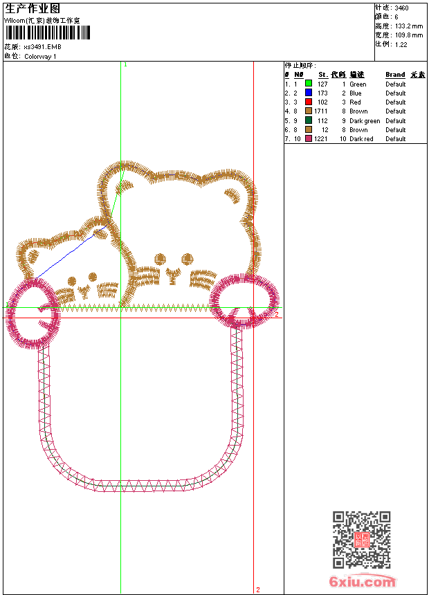- emb花版参数: 大小:43.50 KB / 尺寸:110*133[毫米] / 针数:3460针 / 线色:6 / 格式:emb / 版本:9