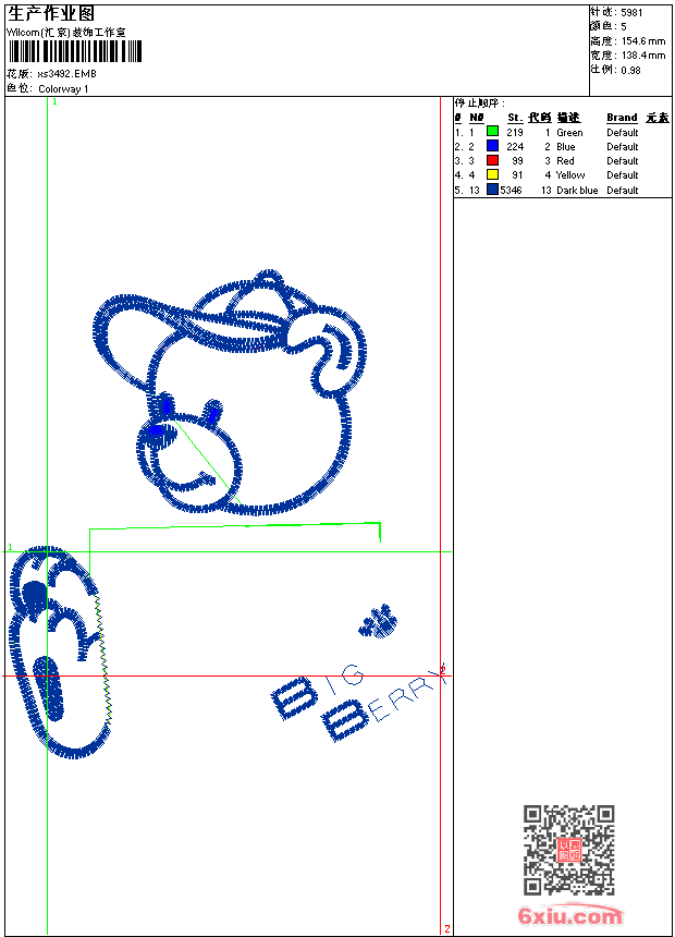 - 版带文件需绣花软件方可打开,可配色打印导出各种格式或直接上机绣。如无绣花软件可下载1:1模拟效果图。