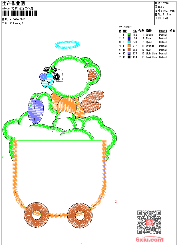 - 版带文件需绣花软件方可打开,可配色打印导出各种格式或直接上机绣。如无绣花软件可下载1:1模拟效果图。
