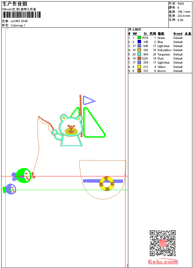 - 版带文件需绣花软件方可打开,可配色打印导出各种格式或直接上机绣。如无绣花软件可下载1:1模拟效果图。