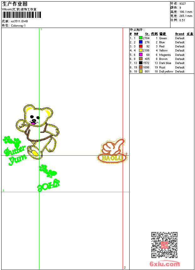 - 版带文件需绣花软件方可打开,可配色打印导出各种格式或直接上机绣。如无绣花软件可下载1:1模拟效果图。