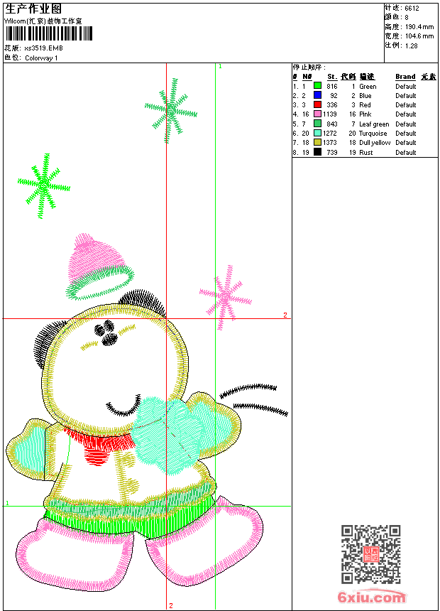 - 版带文件需绣花软件方可打开,可配色打印导出各种格式或直接上机绣。如无绣花软件可下载1:1模拟效果图。
