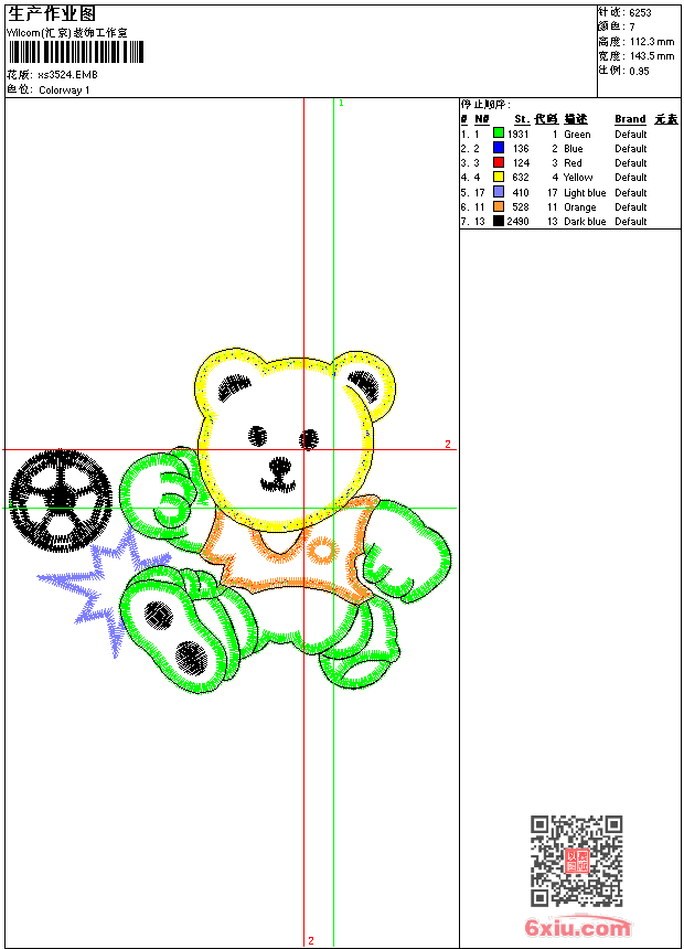 - emb花版参数: 大小:79.00 KB / 尺寸:143*112[毫米] / 针数:6253针 / 线色:7 / 格式:emb / 版本:9