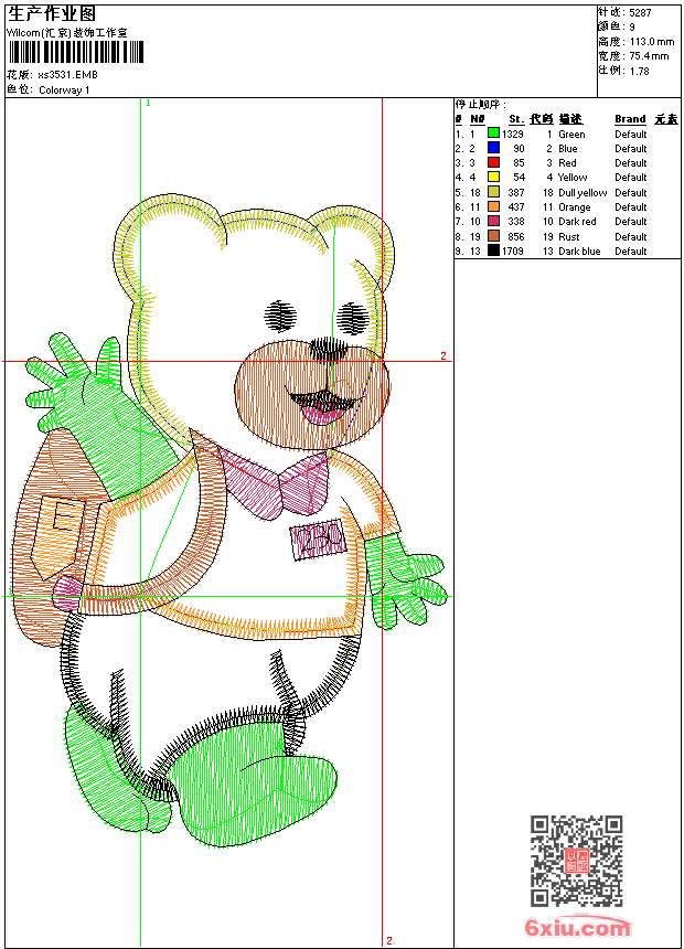 - 版带文件需绣花软件方可打开,可配色打印导出各种格式或直接上机绣。如无绣花软件可下载1:1模拟效果图。