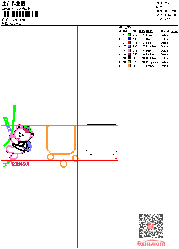 - 版带文件需绣花软件方可打开,可配色打印导出各种格式或直接上机绣。如无绣花软件可下载1:1模拟效果图。