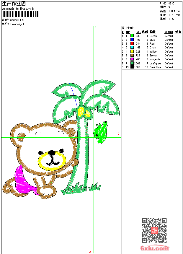 - 版带文件需绣花软件方可打开,可配色打印导出各种格式或直接上机绣。如无绣花软件可下载1:1模拟效果图。