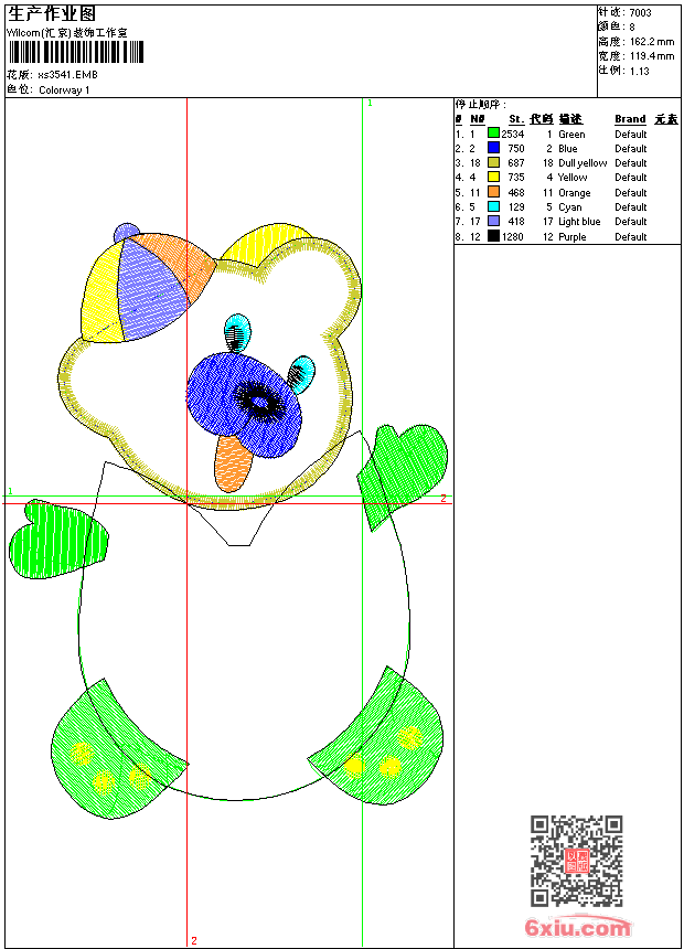 - 版带文件需绣花软件方可打开,可配色打印导出各种格式或直接上机绣。如无绣花软件可下载1:1模拟效果图。