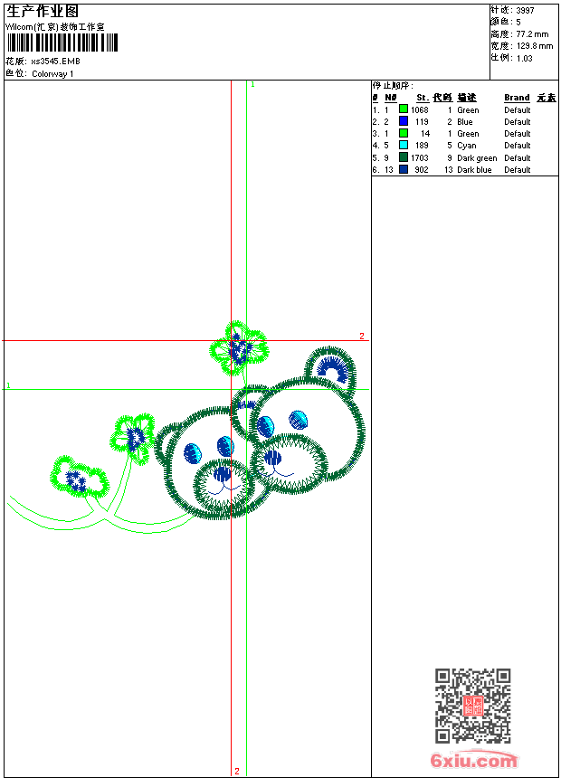 - 版带文件需绣花软件方可打开,可配色打印导出各种格式或直接上机绣。如无绣花软件可下载1:1模拟效果图。