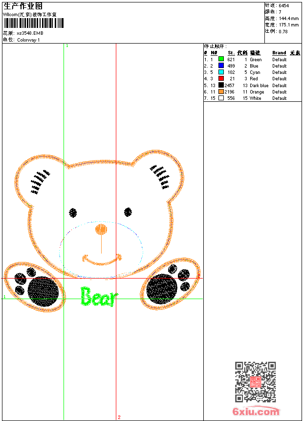 - 版带文件需绣花软件方可打开,可配色打印导出各种格式或直接上机绣。如无绣花软件可下载1:1模拟效果图。