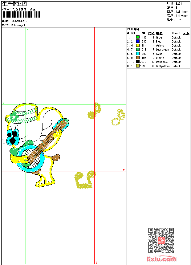 - 版带文件需绣花软件方可打开,可配色打印导出各种格式或直接上机绣。如无绣花软件可下载1:1模拟效果图。