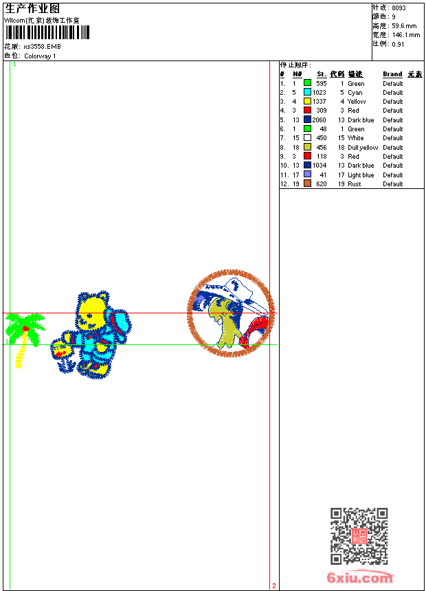 - 版带文件需绣花软件方可打开,可配色打印导出各种格式或直接上机绣。如无绣花软件可下载1:1模拟效果图。