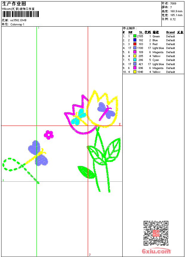 - 版带文件需绣花软件方可打开,可配色打印导出各种格式或直接上机绣。如无绣花软件可下载1:1模拟效果图。