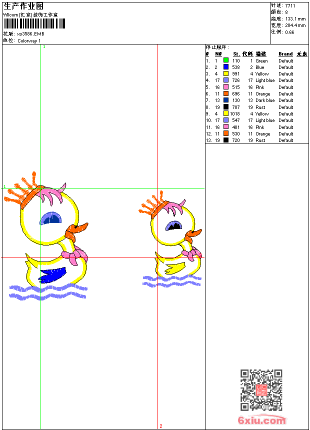 - 版带文件需绣花软件方可打开,可配色打印导出各种格式或直接上机绣。如无绣花软件可下载1:1模拟效果图。