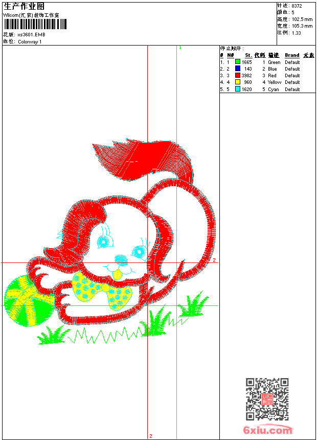- 版带文件需绣花软件方可打开,可配色打印导出各种格式或直接上机绣。如无绣花软件可下载1:1模拟效果图。