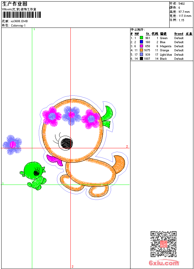 - 版带文件需绣花软件方可打开,可配色打印导出各种格式或直接上机绣。如无绣花软件可下载1:1模拟效果图。