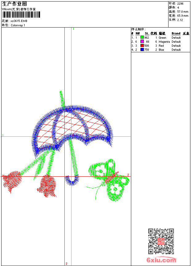 - emb花版参数: 大小:32.00 KB / 尺寸:66*57[毫米] / 针数:2296针 / 线色:4 / 格式:emb / 版本:9