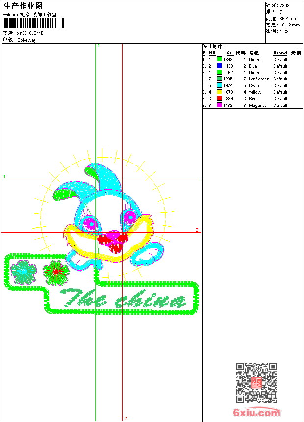 - 版带文件需绣花软件方可打开,可配色打印导出各种格式或直接上机绣。如无绣花软件可下载1:1模拟效果图。