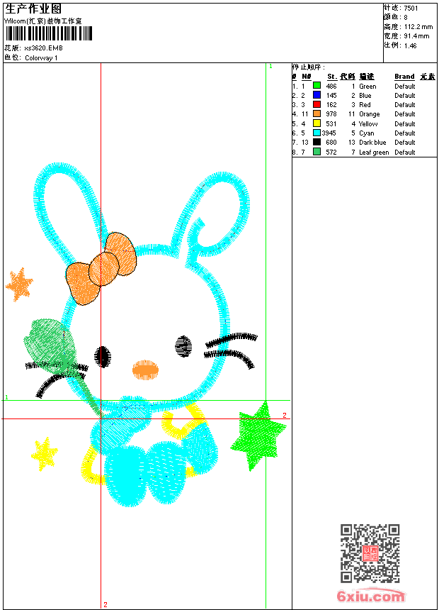 - 版带文件需绣花软件方可打开,可配色打印导出各种格式或直接上机绣。如无绣花软件可下载1:1模拟效果图。