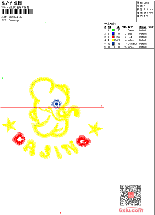 - 版带文件需绣花软件方可打开,可配色打印导出各种格式或直接上机绣。如无绣花软件可下载1:1模拟效果图。