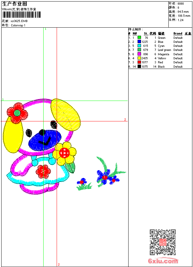 - 版带文件需绣花软件方可打开,可配色打印导出各种格式或直接上机绣。如无绣花软件可下载1:1模拟效果图。