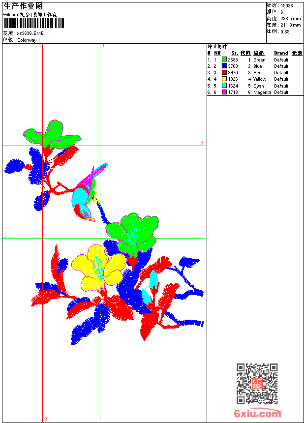 - emb花版参数: 大小:75.00 KB / 尺寸:211*239[毫米] / 针数:15038针 / 线色:6 / 格式:emb / 版本:9