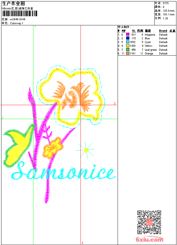 - 版带文件需绣花软件方可打开,可配色打印导出各种格式或直接上机绣。如无绣花软件可下载1:1模拟效果图。
