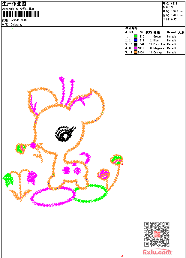 - emb花版参数: 大小:66.00 KB / 尺寸:176*190[毫米] / 针数:6336针 / 线色:5 / 格式:emb / 版本:9