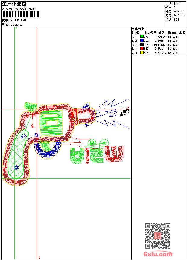 - emb花版参数: 大小:28.50 KB / 尺寸:71*48[毫米] / 针数:2848针 / 线色:5 / 格式:emb / 版本:9