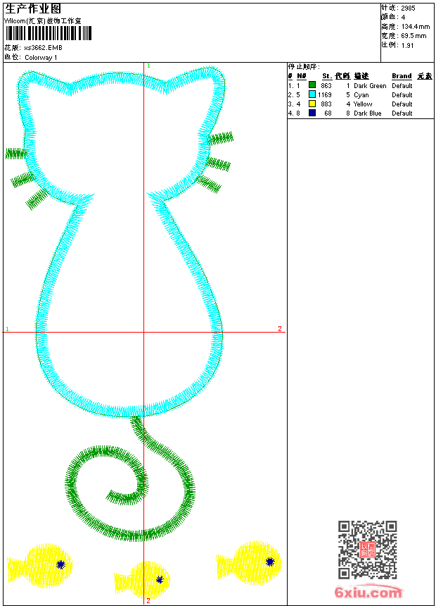 - 版带文件需绣花软件方可打开,可配色打印导出各种格式或直接上机绣。如无绣花软件可下载1:1模拟效果图。