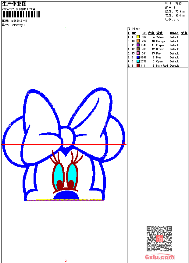 - 版带文件需绣花软件方可打开,可配色打印导出各种格式或直接上机绣。如无绣花软件可下载1:1模拟效果图。