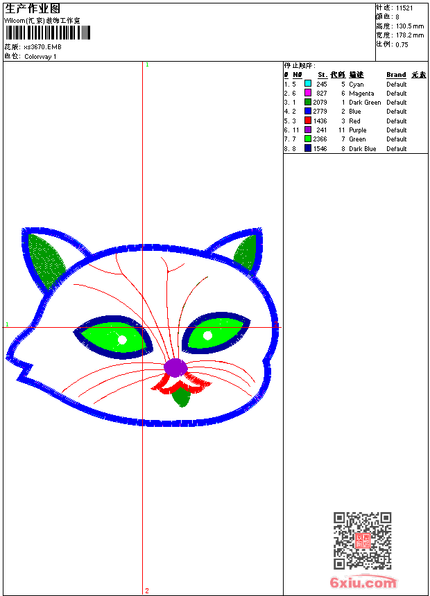 - 版带文件需绣花软件方可打开,可配色打印导出各种格式或直接上机绣。如无绣花软件可下载1:1模拟效果图。