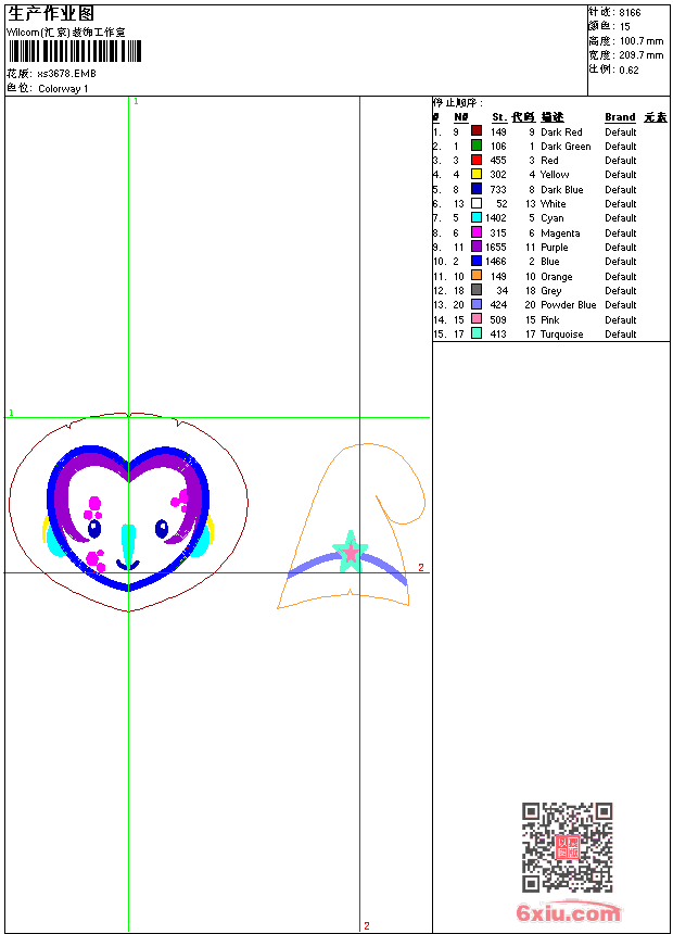 - 版带文件需绣花软件方可打开,可配色打印导出各种格式或直接上机绣。如无绣花软件可下载1:1模拟效果图。