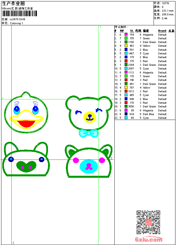 - 版带文件需绣花软件方可打开,可配色打印导出各种格式或直接上机绣。如无绣花软件可下载1:1模拟效果图。