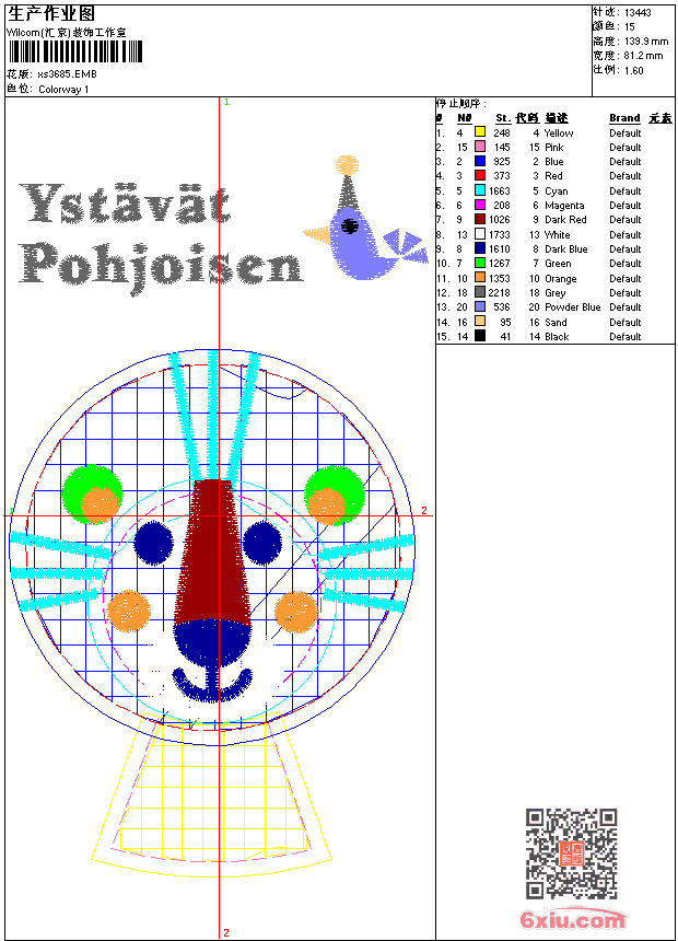 - 版带文件需绣花软件方可打开,可配色打印导出各种格式或直接上机绣。如无绣花软件可下载1:1模拟效果图。