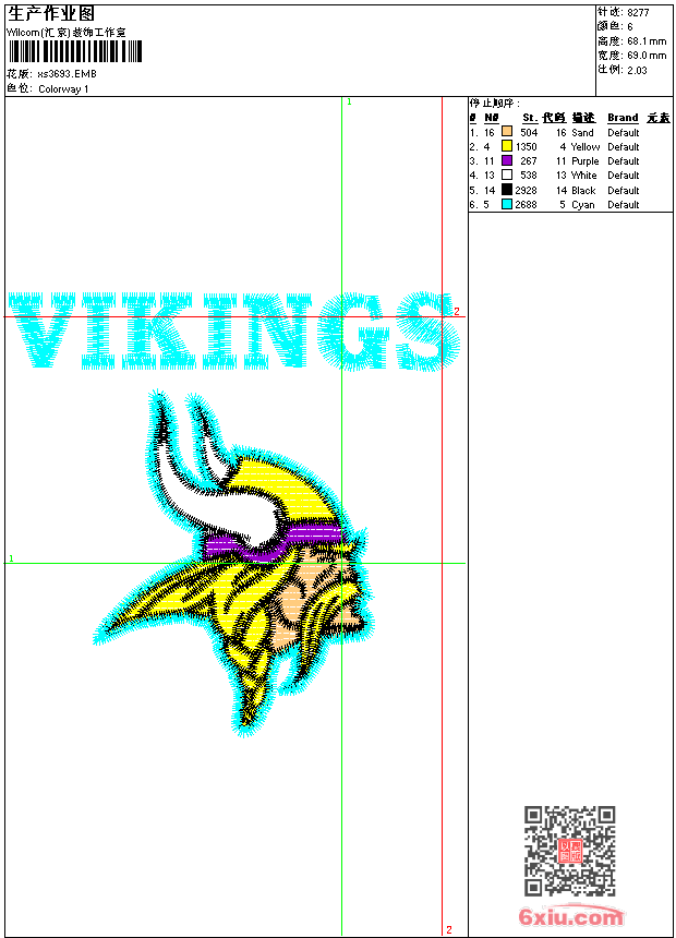 - emb花版参数: 大小:60.00 KB / 尺寸:69*68[毫米] / 针数:8277针 / 线色:6 / 格式:emb / 版本:9