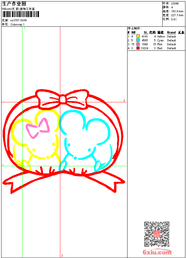 - 版带文件需绣花软件方可打开,可配色打印导出各种格式或直接上机绣。如无绣花软件可下载1:1模拟效果图。