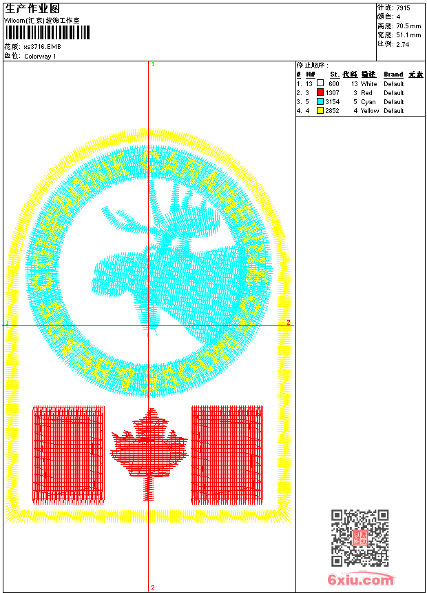 - emb花版参数: 大小:56.00 KB / 尺寸:51*71[毫米] / 针数:7921针 / 线色:4 / 格式:emb / 版本:9