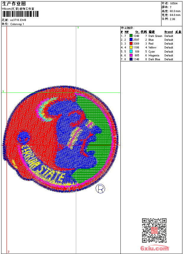 - 版带文件需绣花软件方可打开,可配色打印导出各种格式或直接上机绣。如无绣花软件可下载1:1模拟效果图。