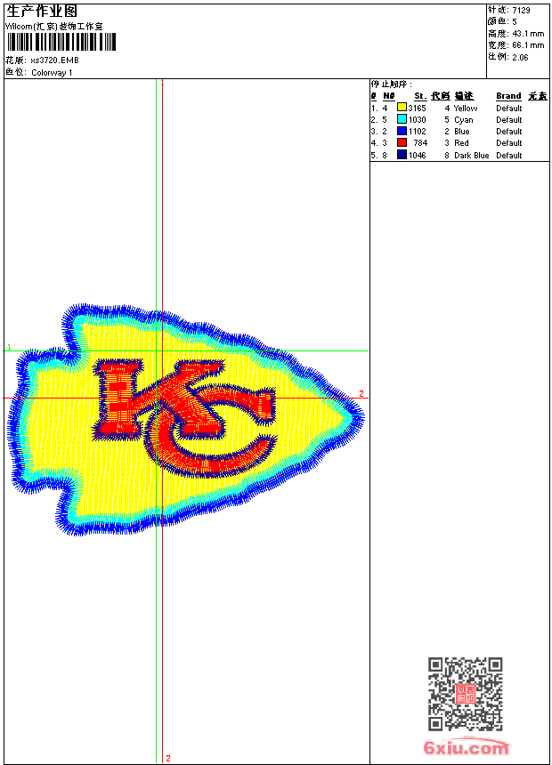 - emb花版参数: 大小:44.50 KB / 尺寸:66*43[毫米] / 针数:7129针 / 线色:5 / 格式:emb / 版本:9