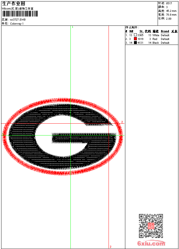 - emb花版参数: 大小:40.00 KB / 尺寸:71*45[毫米] / 针数:8517针 / 线色:3 / 格式:emb / 版本:9