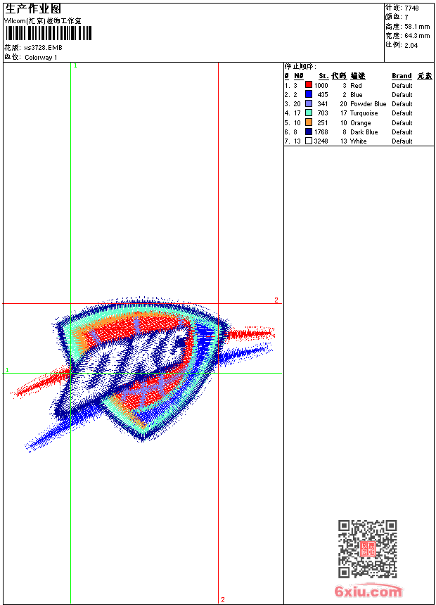 - 版带文件需绣花软件方可打开,可配色打印导出各种格式或直接上机绣。如无绣花软件可下载1:1模拟效果图。