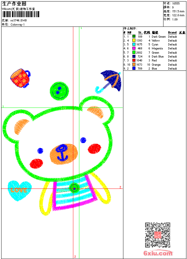 - 版带文件需绣花软件方可打开,可配色打印导出各种格式或直接上机绣。如无绣花软件可下载1:1模拟效果图。