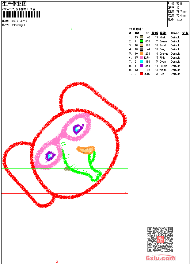 - 版带文件需绣花软件方可打开,可配色打印导出各种格式或直接上机绣。如无绣花软件可下载1:1模拟效果图。