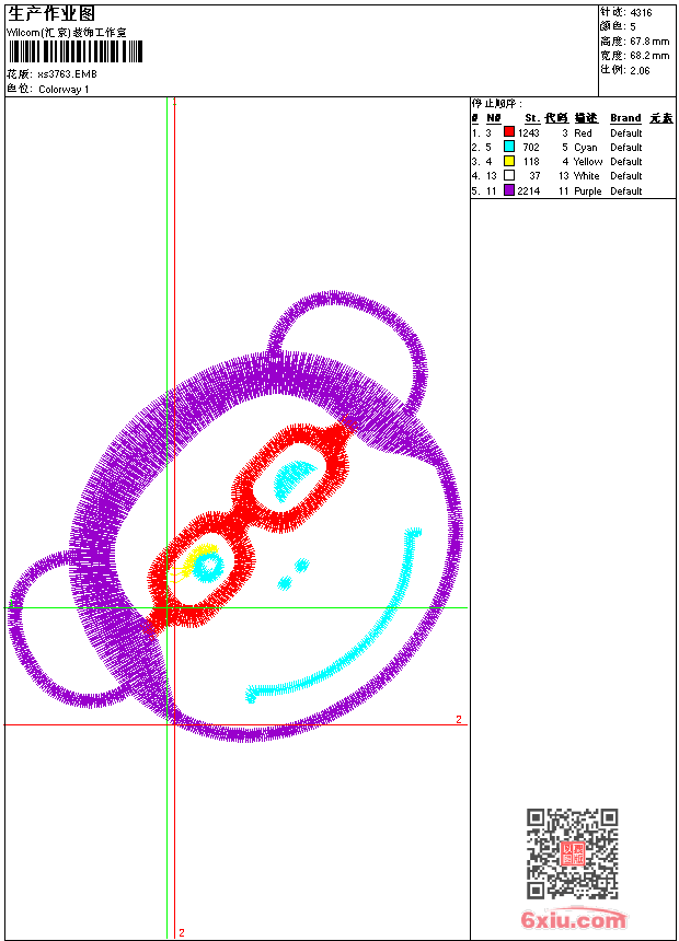 - 版带文件需绣花软件方可打开,可配色打印导出各种格式或直接上机绣。如无绣花软件可下载1:1模拟效果图。