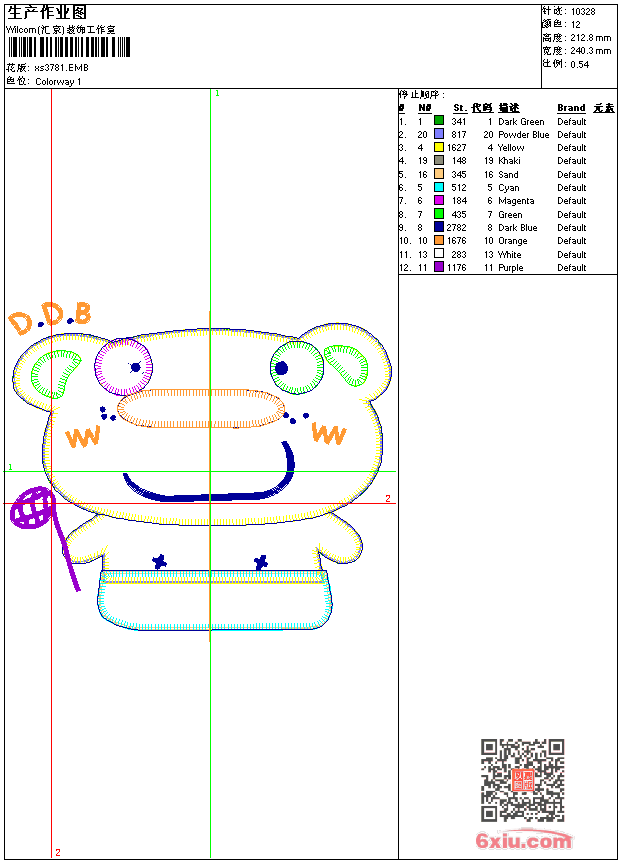 - 版带文件需绣花软件方可打开,可配色打印导出各种格式或直接上机绣。如无绣花软件可下载1:1模拟效果图。