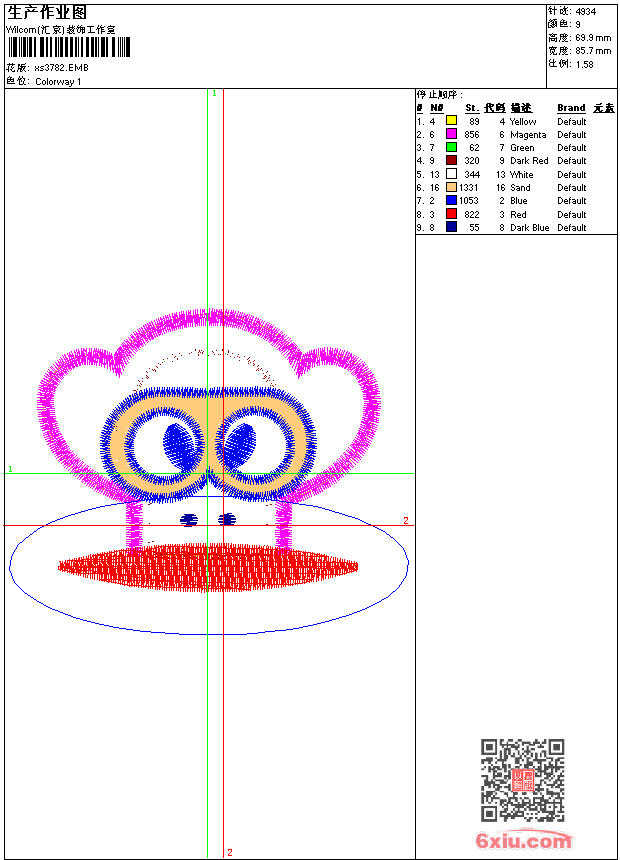 - 版带文件需绣花软件方可打开,可配色打印导出各种格式或直接上机绣。如无绣花软件可下载1:1模拟效果图。
