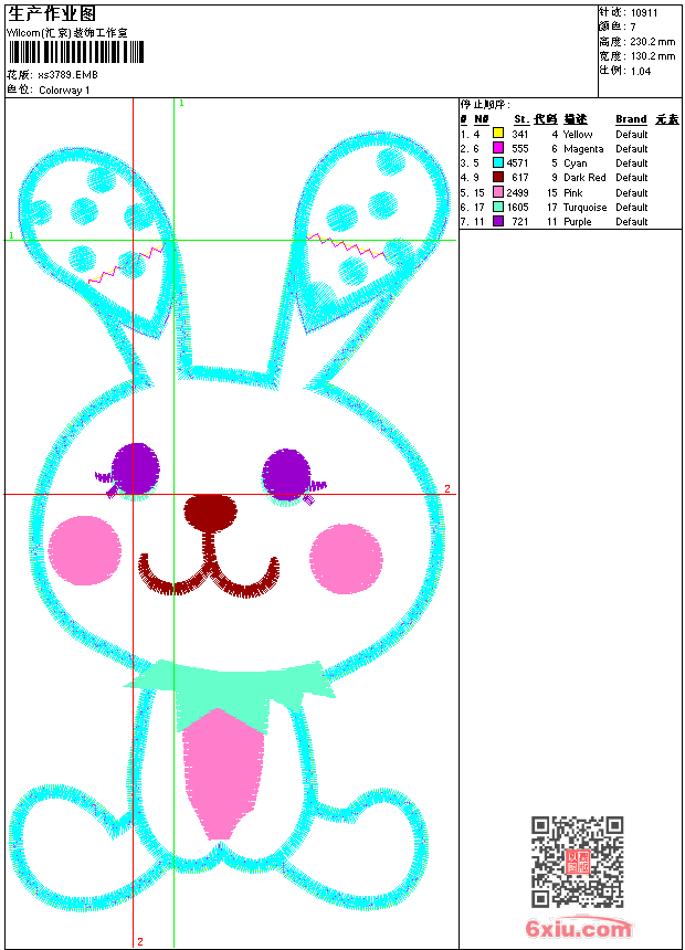 - 版带文件需绣花软件方可打开,可配色打印导出各种格式或直接上机绣。如无绣花软件可下载1:1模拟效果图。