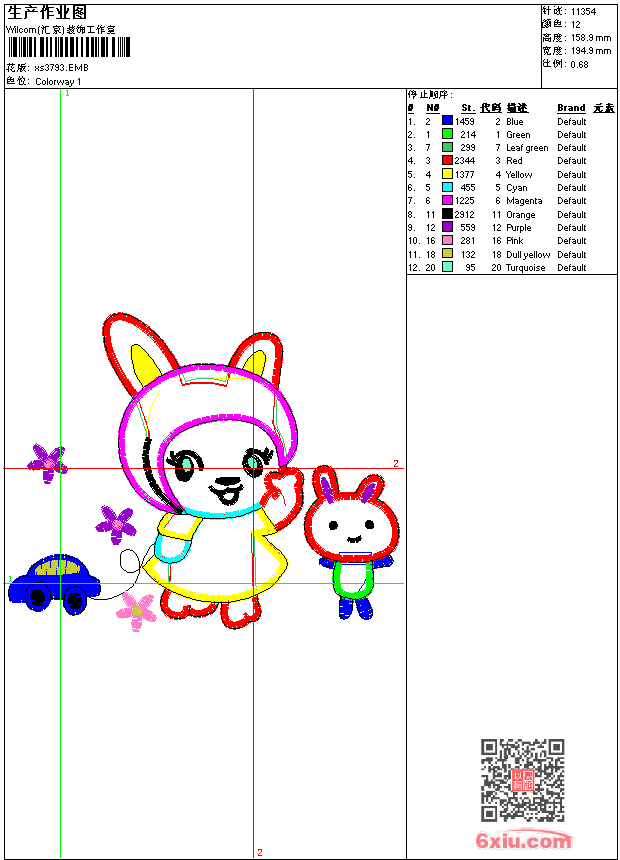 - 版带文件需绣花软件方可打开,可配色打印导出各种格式或直接上机绣。如无绣花软件可下载1:1模拟效果图。