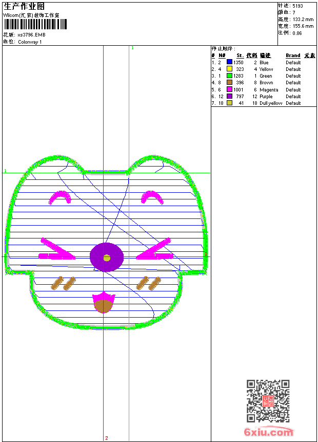 - 版带文件需绣花软件方可打开,可配色打印导出各种格式或直接上机绣。如无绣花软件可下载1:1模拟效果图。